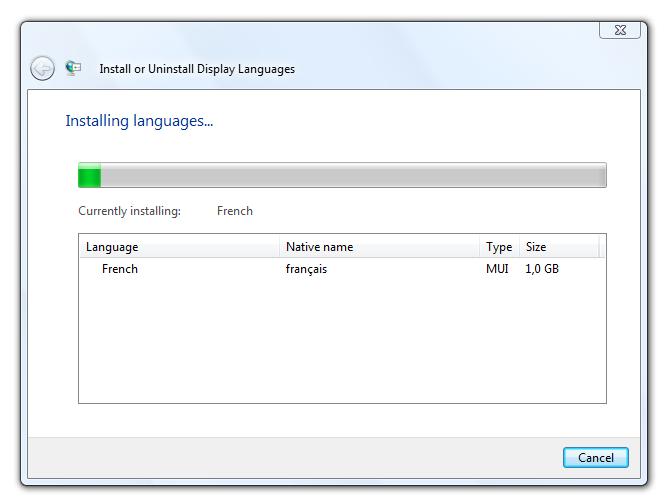 Have Vista booted and be logged in as user with admin privileges. In the following example we’re gonna install a french language pack while we are running an english language version. Do the following:
