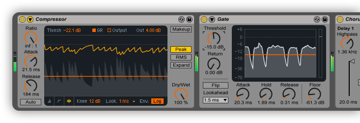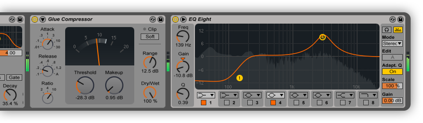 the effects have been reworked. Ableton added an analogue modelled Glue Compressor and a Convolution Reverb (Max4Live), Ableton updated the EQ8 to display a spectrum view and the Compressor to feature Gain Reduction