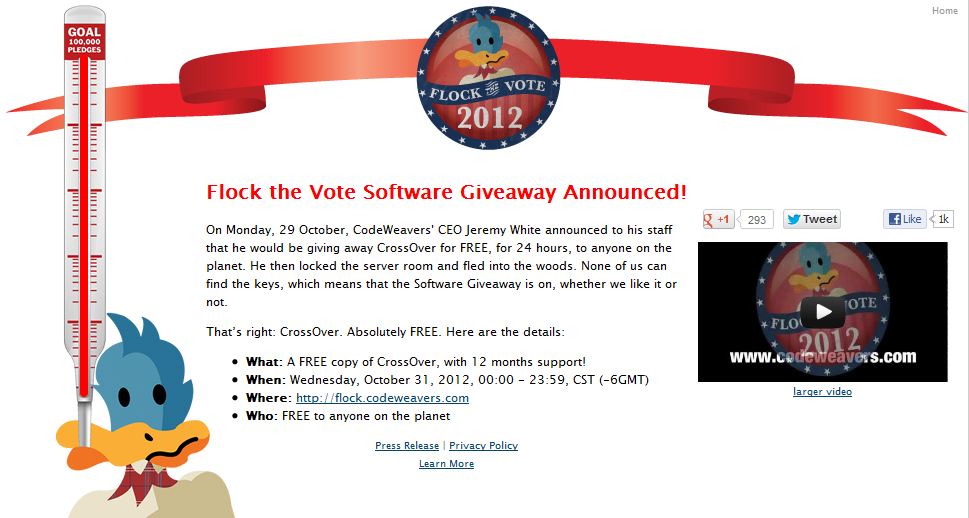 On Wednesday October, 31st, everybody can get a free copy of CrossOver with 12mths support.