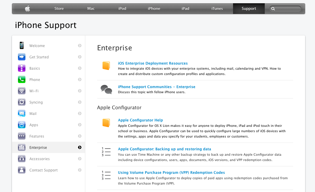 » iOS Enterprise Deployment: https://www.apple.com/support/iphone/enterprise/