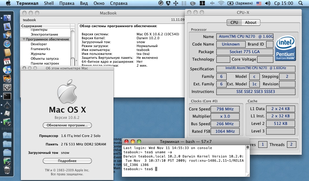 Teateam a russian speaking Mac OS developer binary patched the latest Mac OS X 10.6.2 Mach Kernel to eventually reenable support for Intel Atom CPUs. His kernel seems to be running well in 32bit and in 64bit mode. Atom CPUs are now reported as Intel Core Solo or Core Duo.