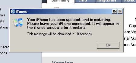 - iTunes will begin its work of extracting and restoring our custom firmware. This process will take some minutes. Don’t disconnect during this period. You would have an expensive brick then.