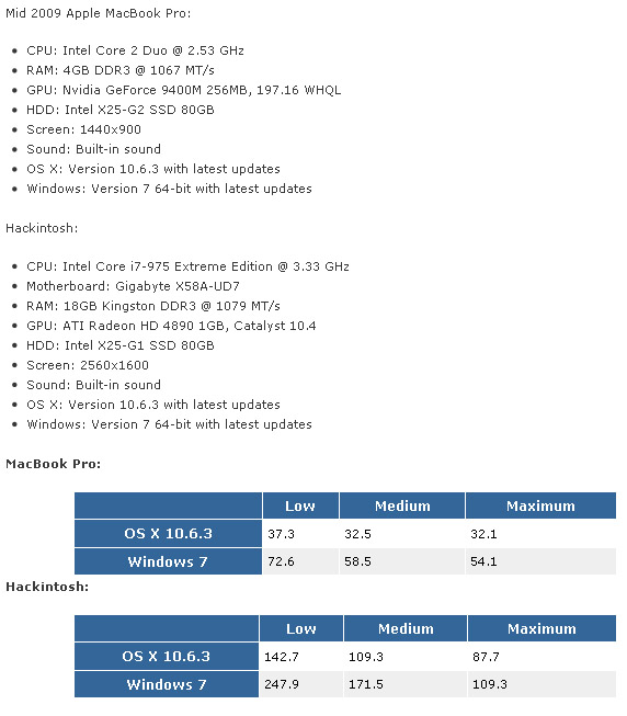 Right, they’ve set up a hackintosh with all its ingrediences. Check their tables: you can clearly see the framerates are a lot higher on a Windows installation, but on a Hackintosh system the Mac OS version of Portal becomes playable after all.